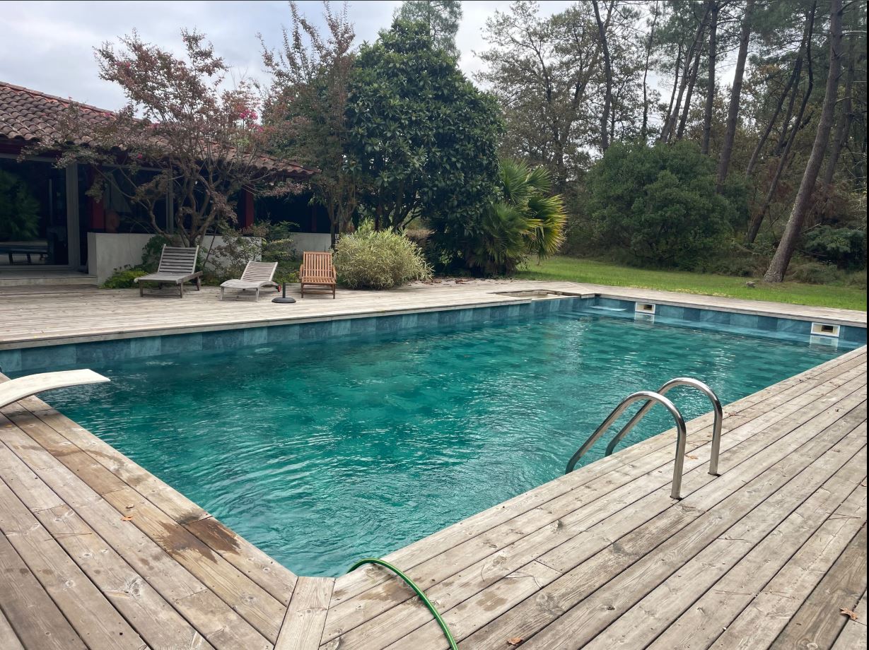 Nos réalisations : Piscines béton sur-mesure, rénovations complètes, remplacements de liner par membrane armée, modernisations de locaux techniques, volets et bâches de sécurité, terrasses bois ou béton… Notre galerie illustre des projets livrés à Dax, Moliets et sur la Côte basque.